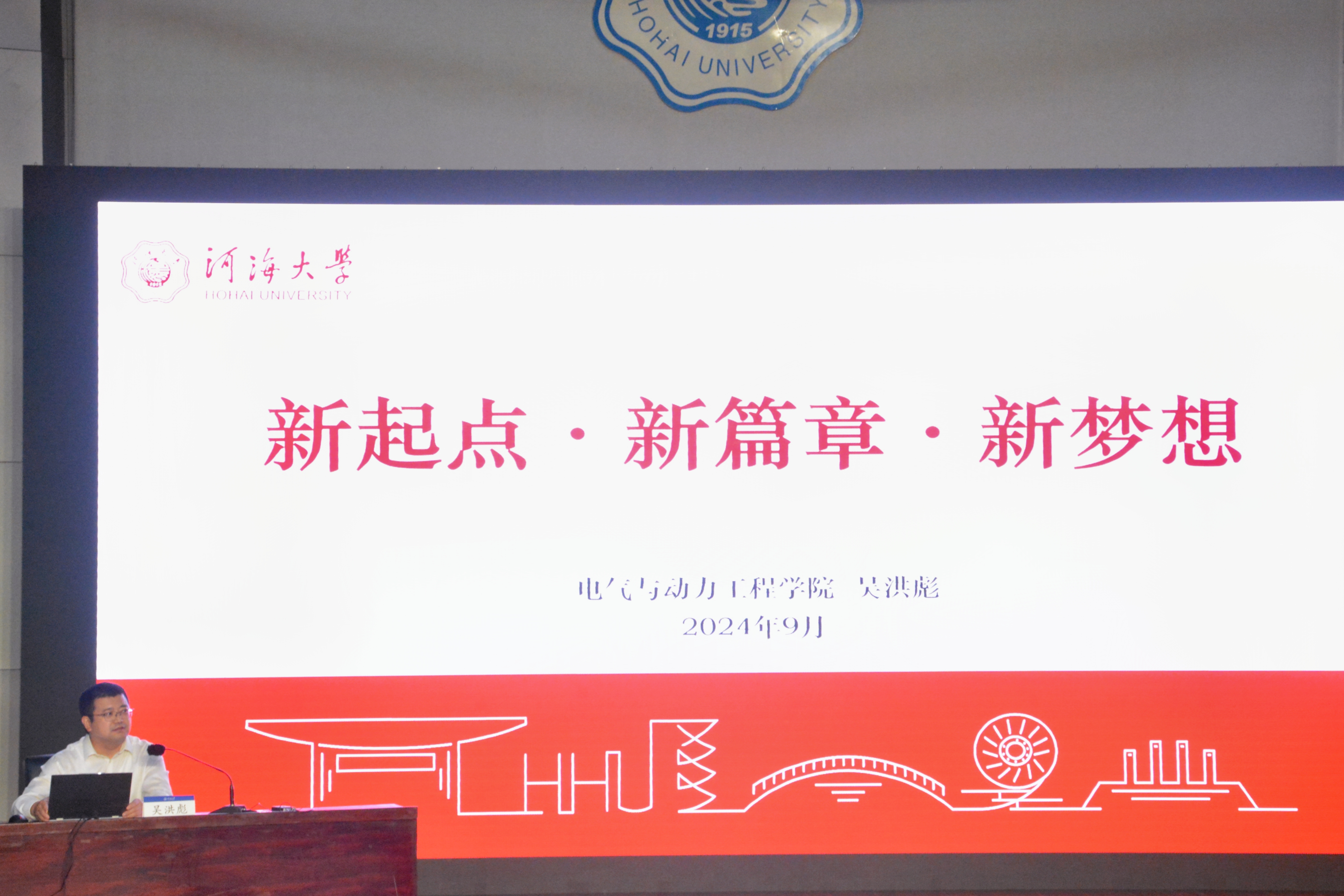 吴洪彪书记向新生详细介绍了学院发展的历史沿革、师资队伍建设、学生培养成效、学科建设及科研突破等有关情况。电气院办学历史可追溯至1958年,致力于深化“新能源-水动-电气”多学科交叉融合,努力建设成为国内电气工程和动力工程人才培养高地和科研创新基地,近年来主要科研指标快速增长,学科建设稳重求进,学生培养成效显著。