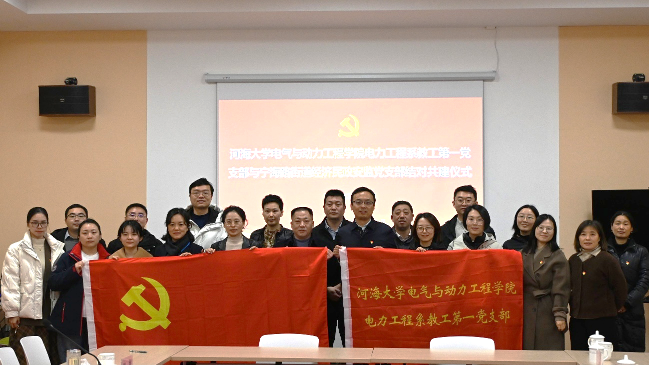 12月10日,电力工程系教工第一党支部赴宁海路街道党群服务中心,与宁海路街道经济民政安监党支部结对共建。副院长孙国强、电力工程系教工第一党支部书记刘皓明等支部党员参加了共建。
