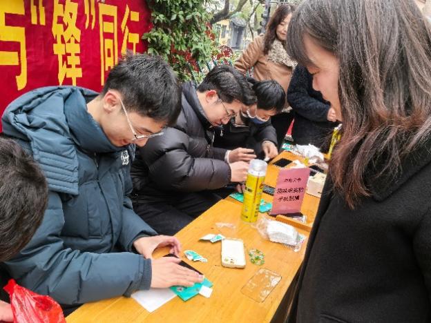 在活动现场,我院研究生化身“技术达人”,为社区居民免费提供手机贴膜、屏幕清洁及使用指导服务。志愿者们耐心询问需求,细致操作,一边科普手机保养知识,一边讲解反诈安全常识,用贴心服务为居民们解决“小困扰”,传递“大温暖”。