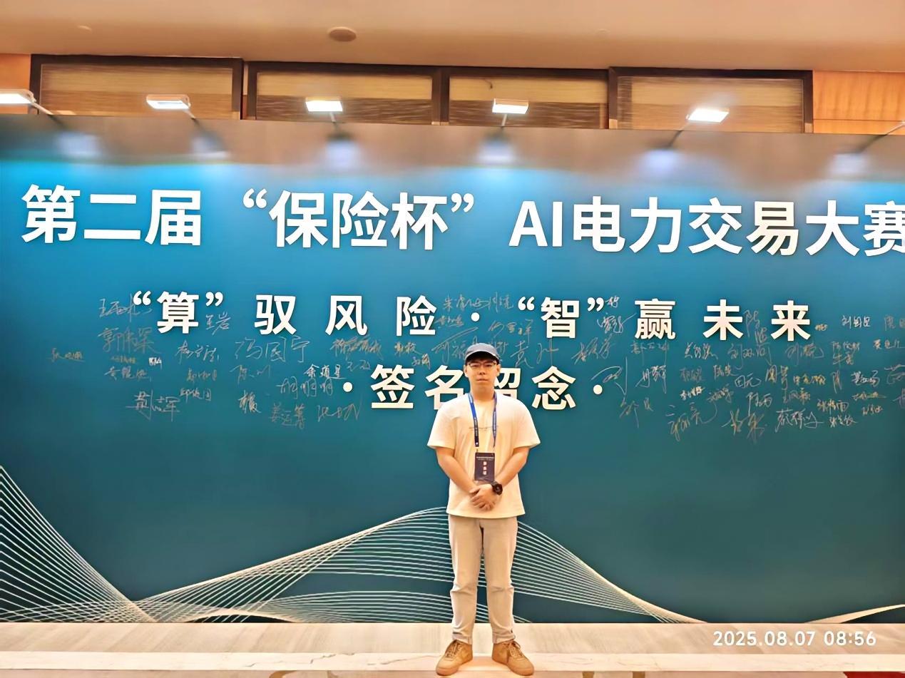 近日,第二届“保险杯”AI电力交易大赛颁奖典礼暨研讨会在广州圆满落幕。我院博士研究生杨天禹与200多家能源行业央国企、头部售电公司、高校及研究机构团队同台竞技,经过半个月的交易模拟竞赛,最终成绩位列个人参赛第2名,总榜第8名(前5%),斩获大赛三等奖。