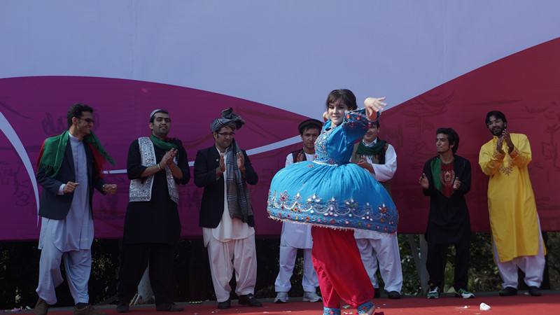 我校阿富汗留学生精心准备的国家风情展,展出了包括阿富汗国情风俗、文字语言、工艺品、服饰服装和各类美食,吸引了大量游客前来观赏,成为全场最受关注的展位。在文化交流之余,阿富汗的同学纷纷登上主舞台载歌载舞。尼泊尔3名留学生组成的开云电竞网冰山乐队,为观众现场弹唱中文歌曲《童话》,同样取得了良好的演出效果。