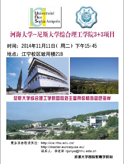 内容:法国尼斯大学综合理工学院“3+3”项目介绍
