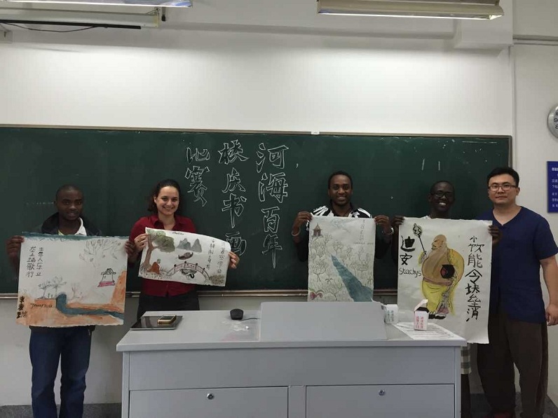 629日下午,我院在闻天馆举行了“迎河海百年校庆书画比赛”,得到了留学生们的积极响应。经过一学期的中国画熏陶,留学生不仅在绘画技法方面日渐成熟,他们对中国书画中寓意也有更深层次的领悟。指导老师对他们的成长表示了很高的赞许。