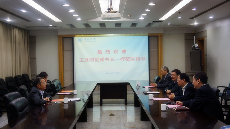 徐辉校长对王胜刚副秘书长一行的到来表示热烈欢迎,对国家留学基金委长期以来给予学校事业发展的支持表示衷心感谢。唐洪武副校长介绍了学校的整体情况,并就学校国际化工程与王胜刚副秘书长进行了工作交流。