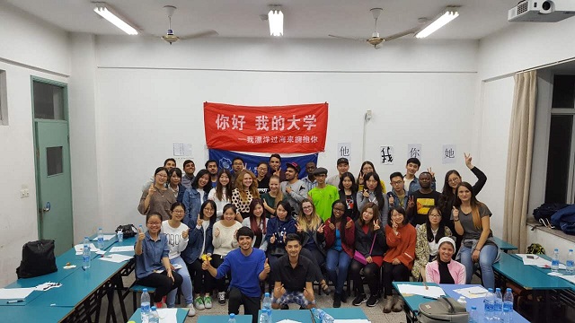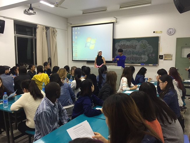 10月20日晚,我院组织开展的“汉语角”活动在我校江宁校区教学楼举行,目的是帮助留学生提高汉语水平、促进中外学生交流。共有四十余位中外学生参与了此次活动,留学生们通过游戏环节学习了汉语的基本人称词汇,通过自由谈话锻炼了口语能力,通过PPT介绍“我的国家”增进了中外学生彼此间的了解,还结交了许多“中国好伙伴”。最后大家合影留念,为两个小时的活动画上了圆满的句号。