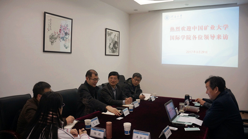 329日下午,中国矿业大学国际学院书记于威、院长桑树勋、副院长兼副书记李红海、办公室主任兼学工办主任尤适等领导一行来院调研。学院张海军院长、任海莹副院长、范锐副院长热情接待了来宾。