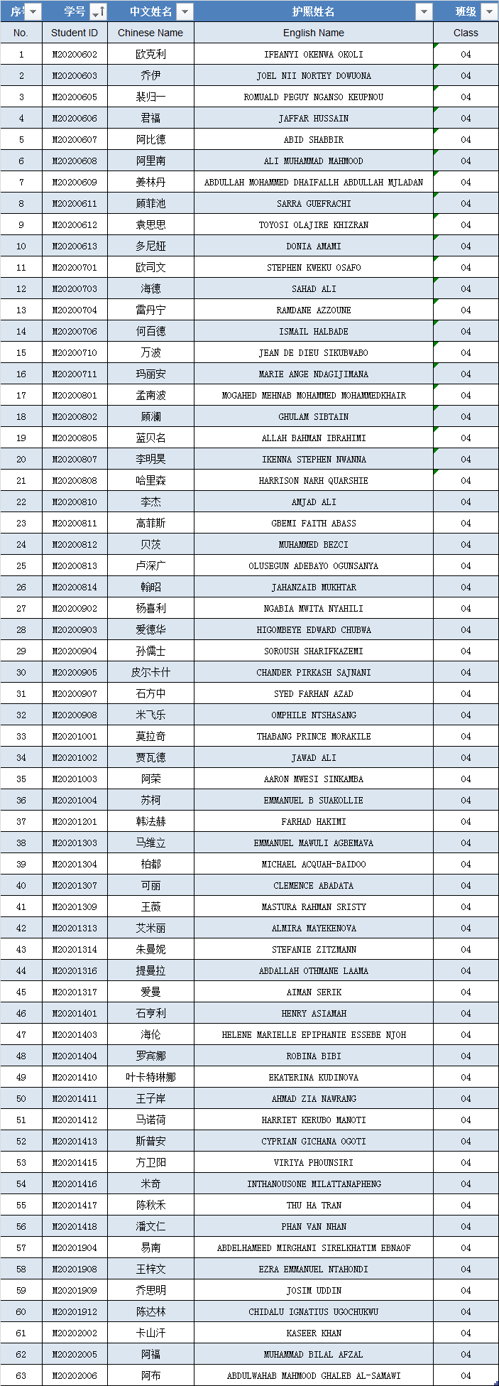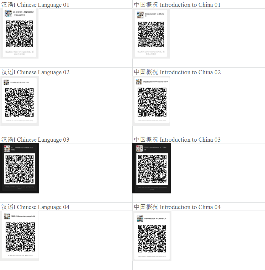 4) Class 04 refers to Chinese Language (2015LXS01-04) and Introduction to China (2015LXS03-04), including the master students of 2020 from the other colleges.