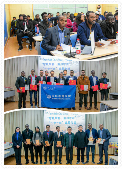 数十名留学生(含全体一带一路项目学生)认真观看了此次活动,大家相互交流和探讨,高度肯定了“一带一路”倡议,深刻认识到共建“一带一路”符合国际社会的根本利益,彰显人类社会共同理想和美好追求,是国际合作以及全球治理新模式的积极探索,将为世界和平发展增添新的正能量,各国应共同打造政治互信、经济融合、文化包容的利益共同体、命运共同体和责任共同体。同学们表示,今后将积极宣传并参与“一带一路”。