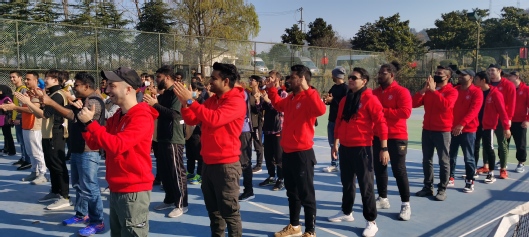 我校哈萨克斯坦籍学生塔吉,应邀作为全体参赛外国青年的代表在开幕式上发言。他感谢主办方精心组织此次比赛,为各国青年友好对话、和平共处提供了宝贵机会;他认为中国政府有效控制了新冠肺炎疫情,与“一带一路”合作伙伴同舟共济,助力各国为抗疫情、稳经济、保民生作出了积极贡献,对此他深有感触。同时,他提出倡议,呼吁各国青年把握好参加体育交流活动的机会,做“一带一路”的参与者、支持者,为世界和平进步和繁荣发展做出青年人应有的贡献。此外,我校留学生还在开幕式上表演了八段锦。