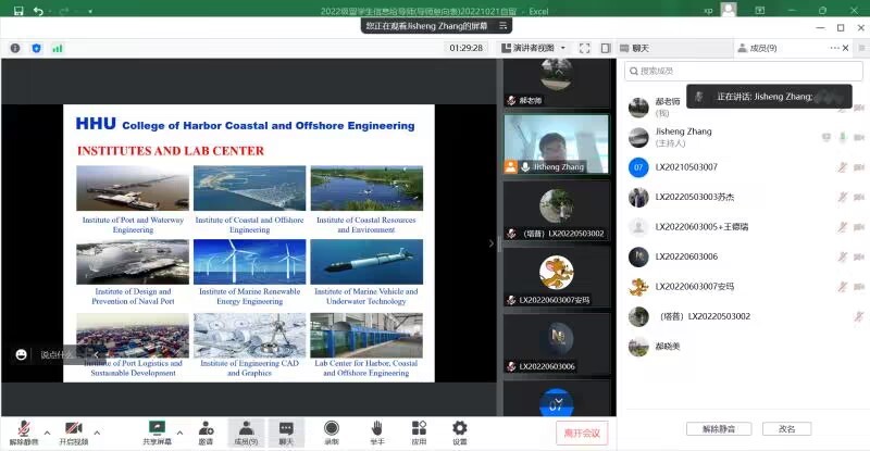 国际教育学院教务办和汉语中心的老师分别介绍了学校的基本情况、留学生教育教学管理相关制度、培养各环节时间安排和毕业条件等,强调了线上教学的注意事项。