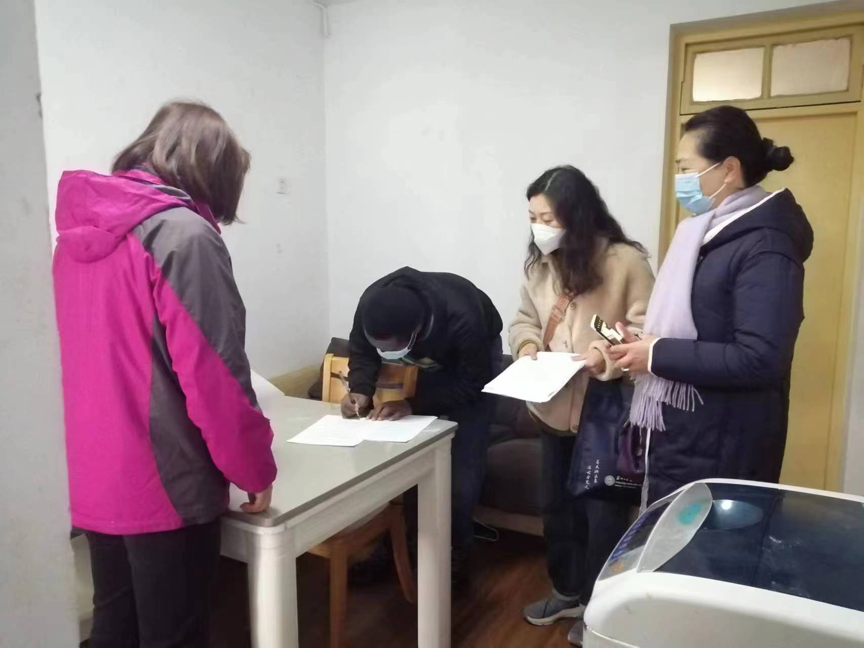 检查组查看了三校区留学生宿舍消防器材布置与消防通道情况,向留学生逐一发放了安全告知书并请学生签字确认,提醒留学生在宿舍内禁止使用大功率电器,强调厨房用电、蜡烛使用、吸烟等安全事项。