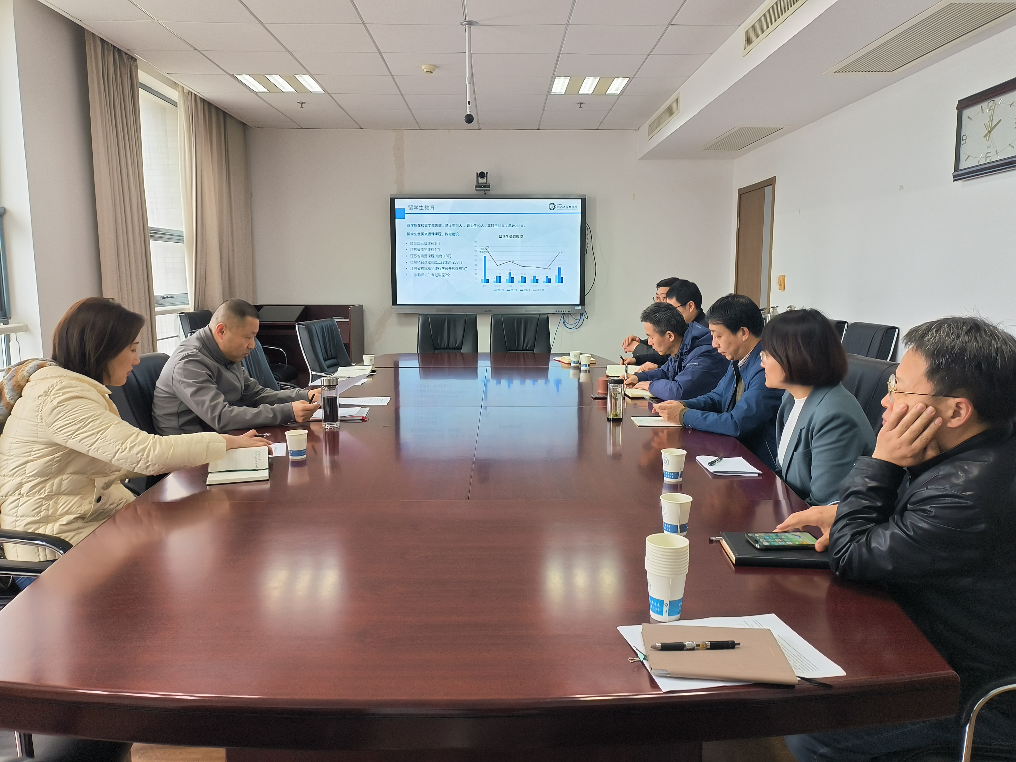 首先,周海炜院长和张丽娜副院长简要介绍了商学院国际教育现状,陈红胜院长对今年学校国际教育年度重点工作进行了解读,鼓励学院充分挖掘国际伙伴资源,积极拓宽国际合作渠道,与境外高水平大学和驻外企业开展合作,努力提高来华留学生培养质量,提升学校国际声誉。