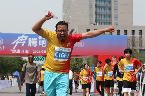 此次,全校共有2000名中外学生参赛,其中留学生140余名。旭日的阳光碰撞上春日翠绿的校园,各位选手都摩拳擦掌,蓄势待发。随着发令枪清脆的声音响彻舞台,中外选手在赛道上一起逐力奔跑,共显河海之魂。