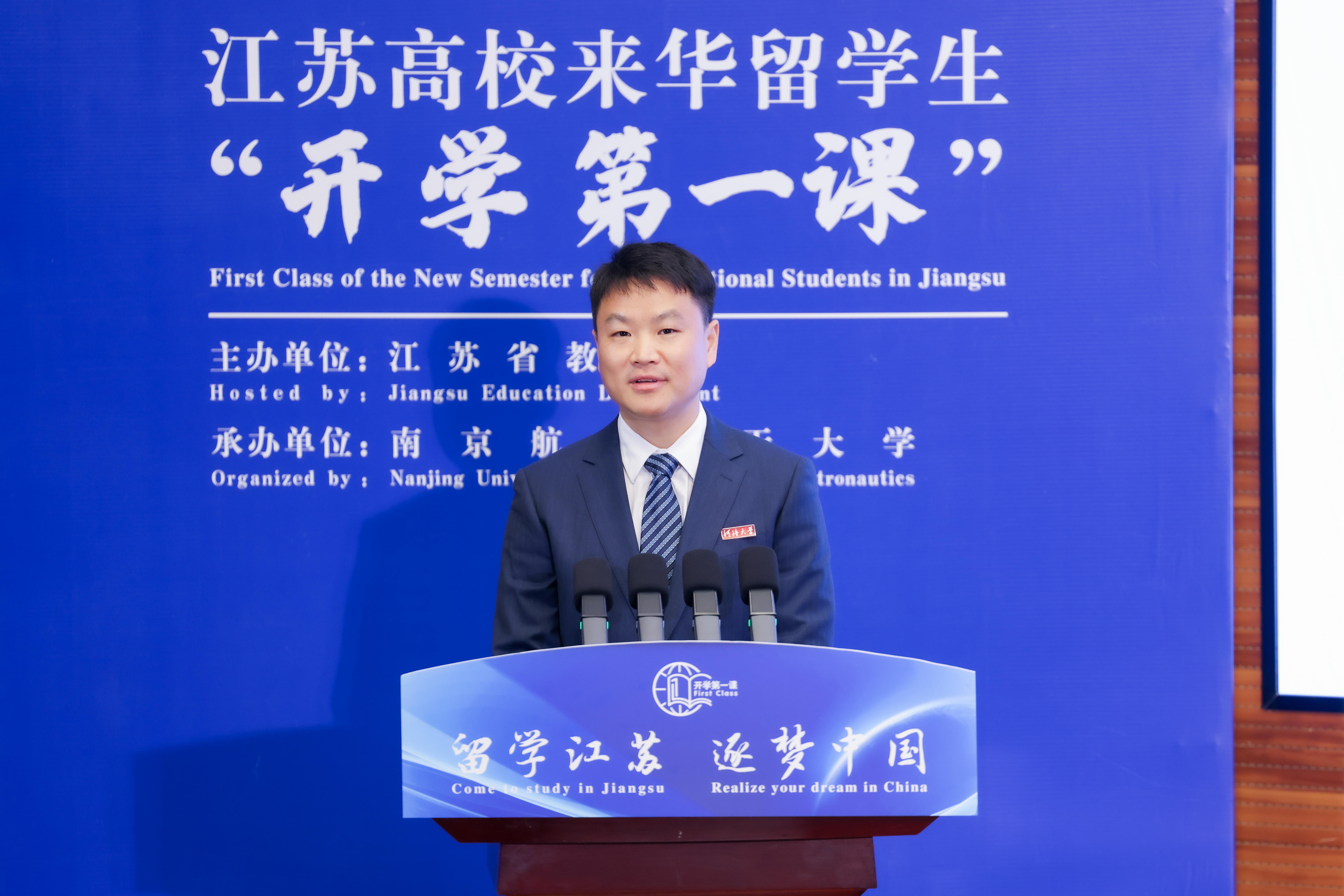 9月26日,由江苏省教育厅主办的“留学江苏 逐梦中国”2024年江苏高校来华留学生“开学第一课”在南京航空航天大学举行。省教育厅副厅长杨树兵、省外办副主任金尚军、省公安厅出入境管理局政委施霄慧等领导出席活动。我校水文水资源学院张珂教授受邀作为导师代表发言,国教院陈红胜院长、带队老师及20名留学生代表出席了此次活动。
