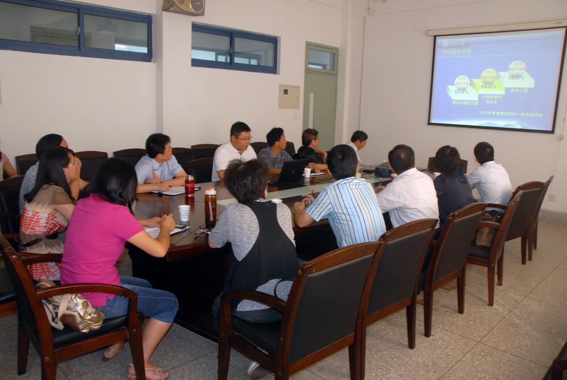 许峰院长代表学院欢迎科技处、社科处来学院调研,并从学科建设、科研工作、师资队伍、人才培养等方面介绍了学院的发展情况。许峰院长对科技处在计信院学科发展、科研推进过程中给予的帮助表示感谢;希望今后科技处能继续关注支持计信院。张雪刚书记、曹宁副院长、万定生副院长、教师代表就科技处部分工作流程提出了合理化建议。李臣明副院长从目标与任务、举措与进展两个方面介绍学院近期的科研工作。
