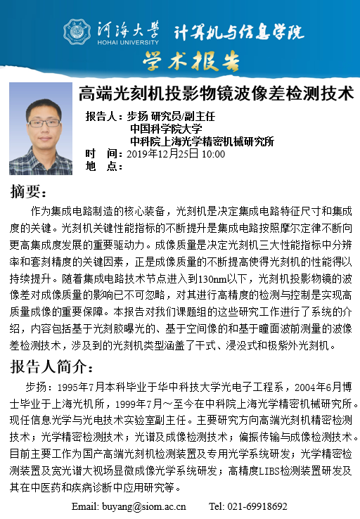 学术报告:高端光刻机投影物镜波像差检测技术