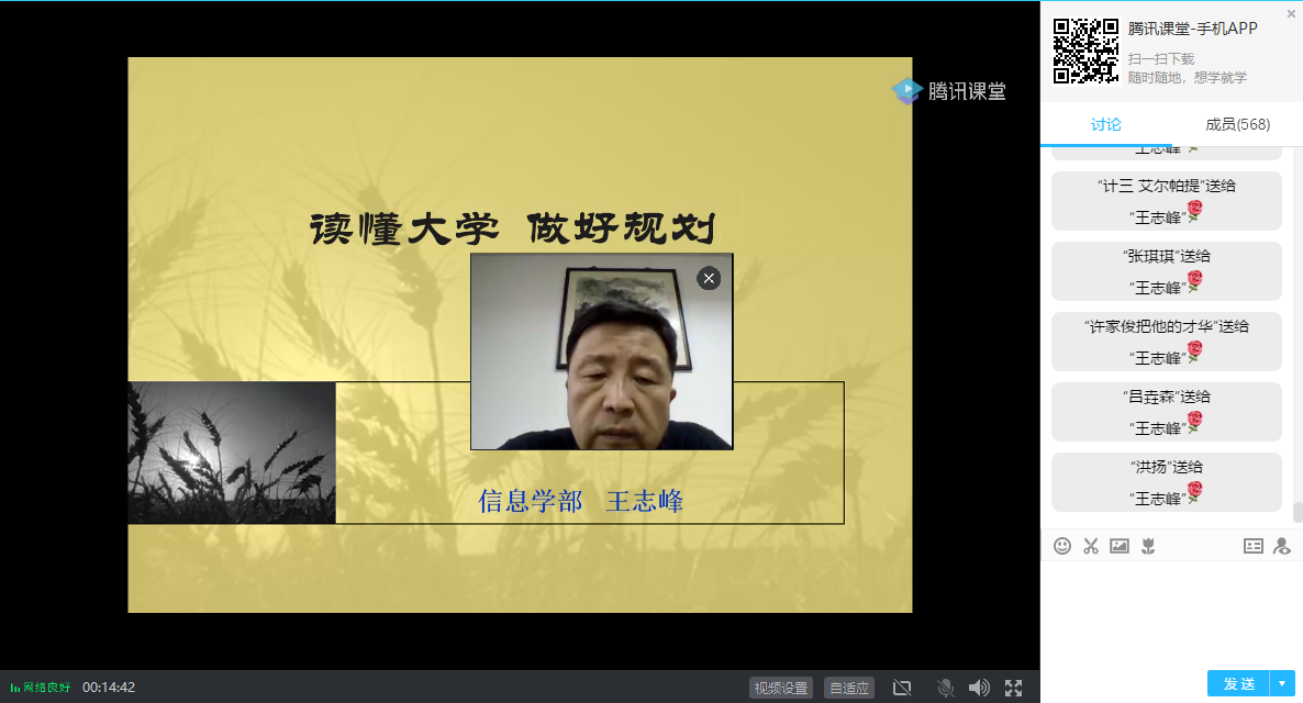 2020年6月18日晚,开云电竞网信息学部党委书记王志峰以“读懂大学,做好规划”为主题向计信院低年级同学开展了一场职业生涯规划讲座。王志峰书记从对当代大学的认识、大学教育的作用、本科后目标分析、职业生涯设计和大学生涯管理五个方面进行了阐述,学院全体辅导员及近600名学生在线聆听。