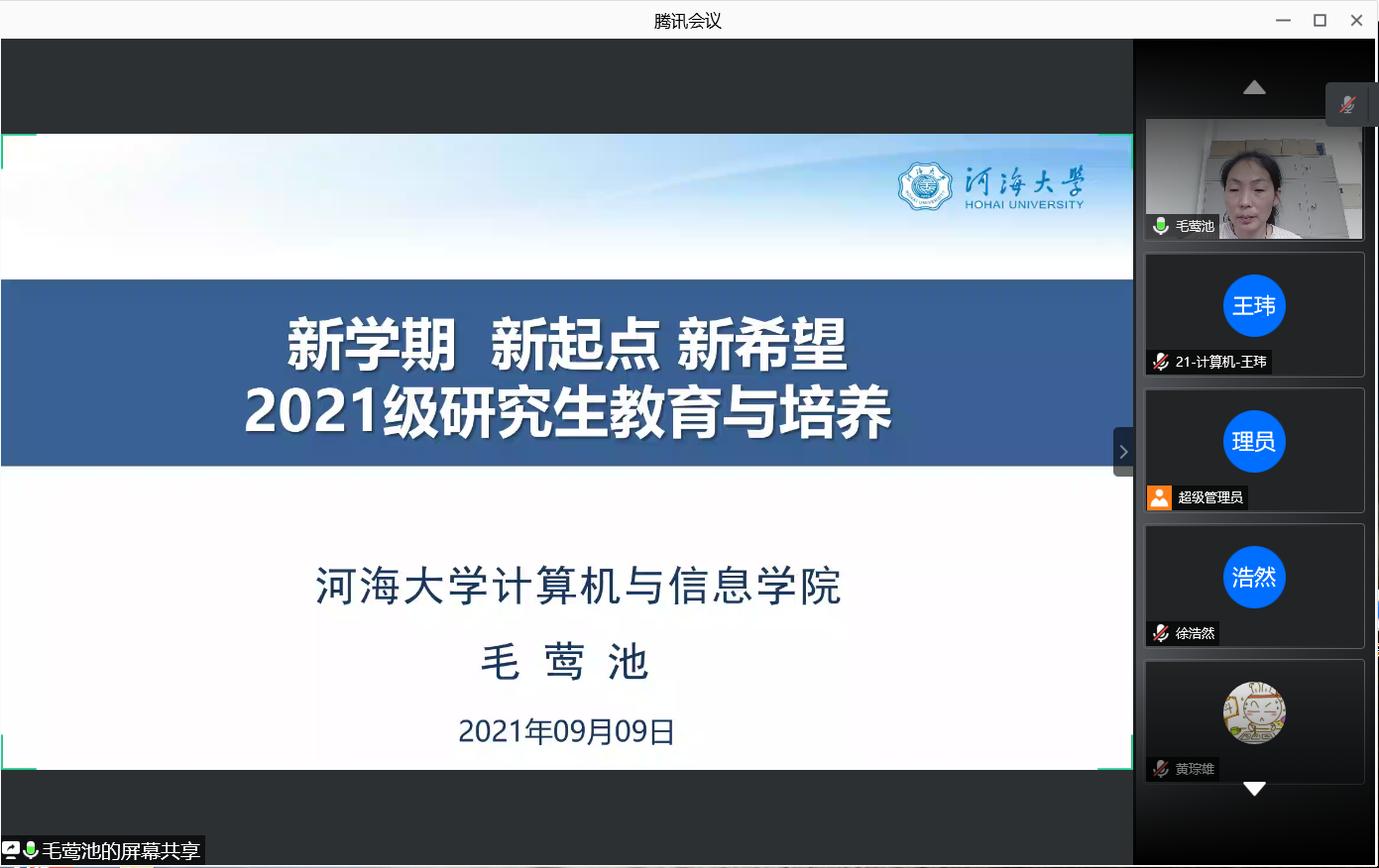 9月7日到9月11日,信息学部计信院2021级研究生线上入学教育系列活动顺利开展,活动通过腾讯会议举行,全体2021级研究生参加。