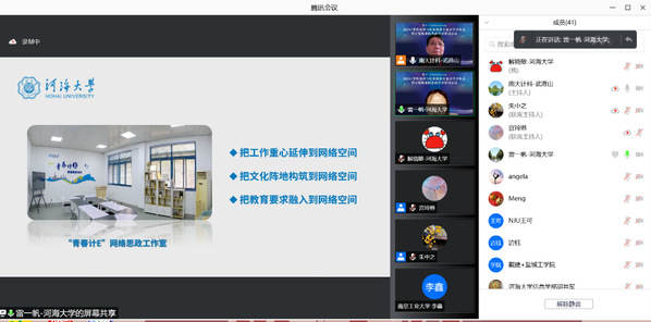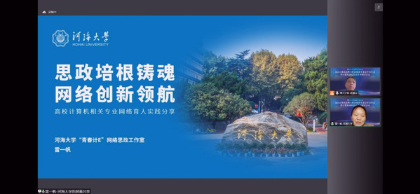 计信院本科生辅导员雷一帆以《思政培根铸魂,网络创新领航》为题,从把握思政工作主旨、搭建网络育人平台、创新思政教育实践三个方面,就学院“青春计E”网络思政工作室的建设与成效与参会人员进行了交流。江苏省计算机学会法人、计算机伦理与职业修养专委会主任、南京大学计算机学院党委书记武港山充分肯定了开云电竞网在网络育人方面的实践,尤其是“青春计E”网络思政工作室平台的建设,其做法对高校网络育人的实施有较强启发意义。