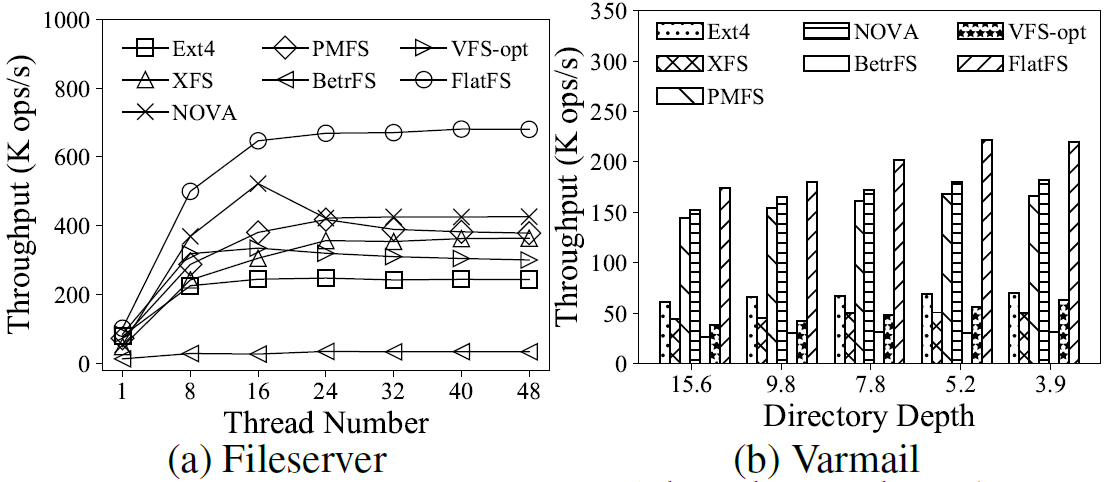 图2 FlatFS在Filebench基准测试程序上的吞吐量
