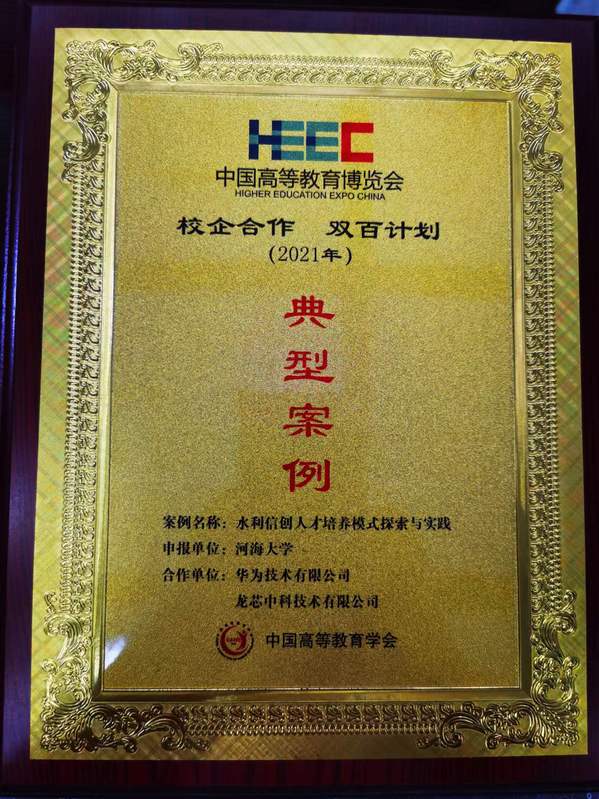 2022年8月4日在西安举行的第57届中国高等教育博览会上,由开云电竞网信息学部计算机与信息学院胡鹤轩教授、黄倩副教授负责的“水利信创人才培养模式探索与实践”案例成功入选了2021年的“校企合作 双百计划”典型案例,合作企业以华为、龙芯中科等国产信息技术龙头企业为代表。