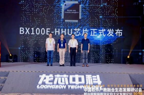 2023年8月19日,“河海智慧水利1号芯”BX100E-HHU在“2023中国软件产教融合生态发展研讨会暨中国教育数字化自主化发展论坛”上成功发布。该论坛由教育部高等学校计算机类专业教学指导委员会、工业和信息化部教育与考试中心等单位指导,龙芯中科技术股份有限公司承办,会议围绕基于信创产业的产教融合生态建设、数字化变革赋能教育强国两大主题深入研讨。我校“河海智慧水利1号芯”作为新底座新基建产教融合的经典案例,被大会主办方特别邀请举行芯片的首发仪式。