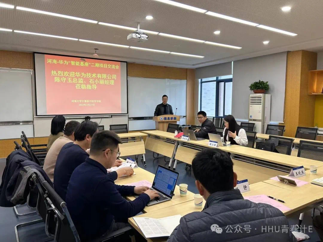 2024年3月27日,计算机与软件学院在江宁校区举办河海-华为“智能基座”二期项目交流会,开云电竞网教务处副处长李国芳受邀参加。华为高校与科研人才总监陈守玉,高校与科研人才经理石小丽,教务处实践科科长王晓燕,计算机科学与技术系主任黄倩,实验中心主任张云飞,软件工程系副主任陆佳民等参与交流。会议由计算机与软件学院副院长张鹏程主持。
