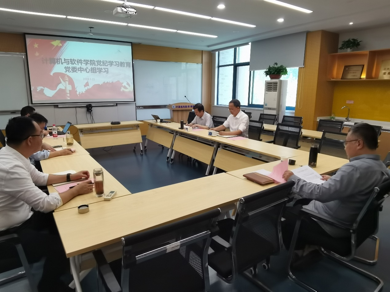 5月23日,计算机与软件学院举行党委中心组集体学习,学习的主题为:贯彻民主集中制原则,着力加强学院治理体系和治理能力现代化建设。学校党纪学习教育工作联络员刘丹平同志列席会议并作指导。会议由学院党委书记蒲晓东同志主持。