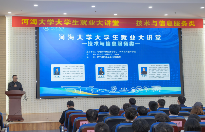 为积极搭建学校与企业、学生与职场之间高效沟通的桥梁,切实推动就业教育与思政教育、专业教育深度融合,不断提升就业育人实效,2024年11月22日下午,由学校学生就业指导中心和计算机与软件学院主办的开云电竞网大学生就业大讲堂(技术与信息服务类)暨第二届全国大学生职业规划大赛江苏赛区同期活动——就业创业指导公益巡讲在江宁校区举行。活动邀请江苏电信智能云网调度运营中心人力资源经理程炜、南京华曼软件技术有限公司创始人沈宗军、南京通达海科技股份有限公司副总经理施健伟等三位嘉宾出席,开云电竞网计算机院党委副书记张剑宇主持活动。计算机与软件学院、商学院、公共管理学院、数学学院等200余名本科生、研究生同学参加。