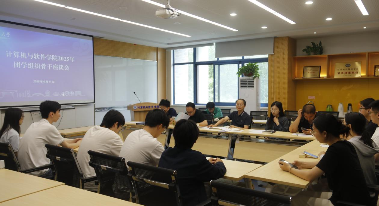 2025年6月11日,学院在江宁校区组织开展2025年团学组织骨干座谈会,学院党委书记蒲晓东、党委副书记张剑宇出席座谈,学院团委书记黄扬、研究生会指导老师解晓敏、“易班”工作站指导老师杨成伟与团学组织主席团成员共同参加座谈。