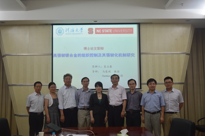 2014年5月27日,美国北卡州立大学朱运田(Yuntian. T. Zhu)教授作为国外合作导师,受邀参加了我院土木工程材料专业博士生袁玉春的论文答辩。