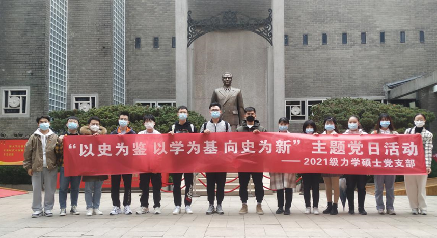 11月21日,2021级力学硕士党支部前往中国共产党代表团梅园新村纪念馆开展“以史为鉴 以学为基 向史为新”党史学习教育主题党日活动,支部全体党员参加。本次党日活动分为参观中国共产党代表团梅园新村纪念馆和交流学习心得两个环节。