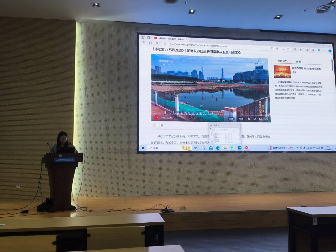 随后全体本科生党员观看了《持续发力 纵深推进》专题警示教育片,深刻剖析教育违纪典型案例,注重用身边事教育身边人,确保全体党员的党纪条例学习入心、入脑,并在党纪学习教育中学有所思、学有所悟、学有所进。