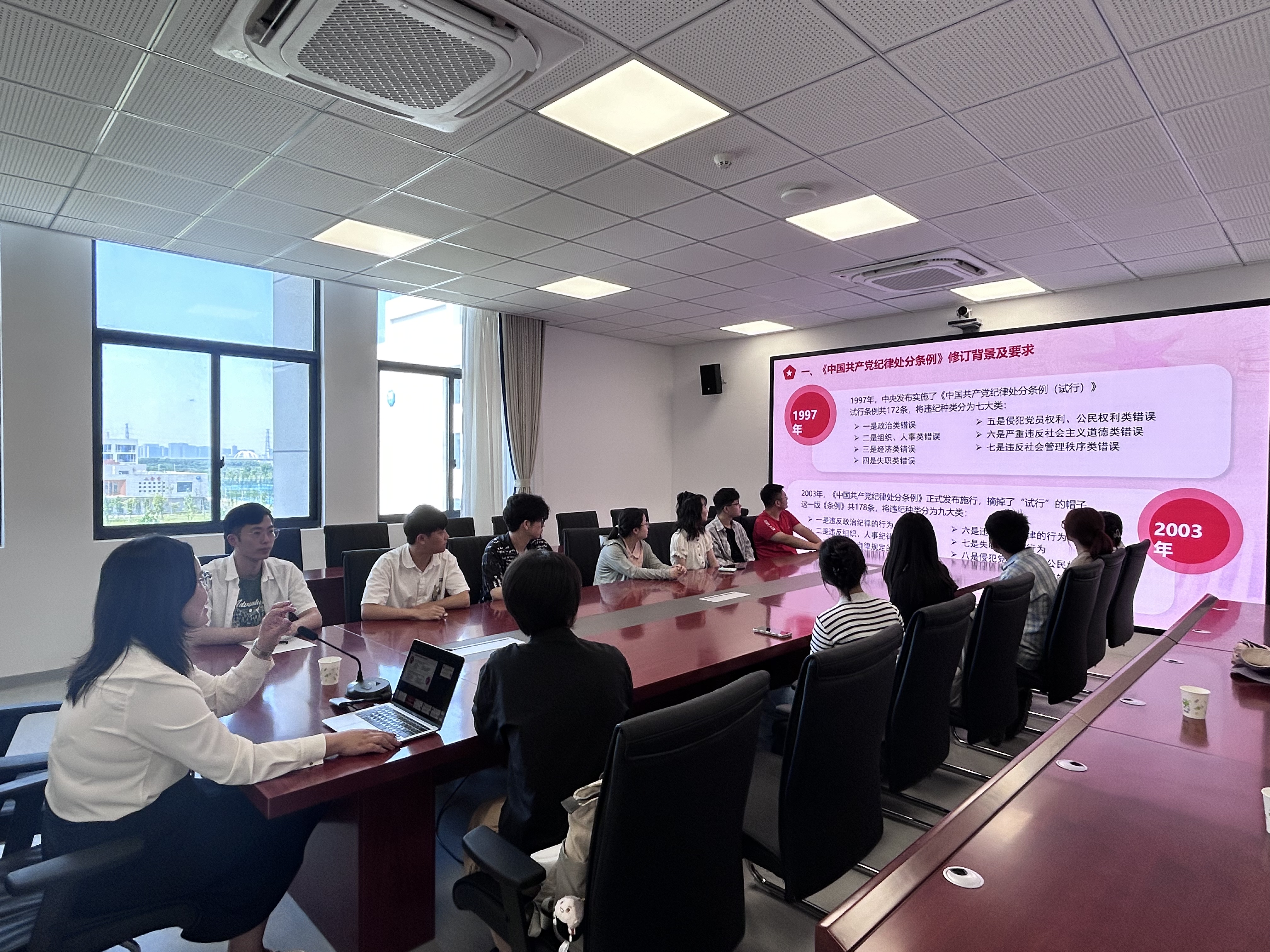 5月23日,常州校区47号楼学生社区功能型党支部联合外语院功能型党支部在56号楼401会议室开展党纪学习教育活动。功能型党支部第一书记王璐进行了《中国共产党纪律处分条例》(以下简称《条例》)解读,来自力学院、外语院、水文院的20余名党员骨干参会,会议由功能型党支部书记李锦主持。