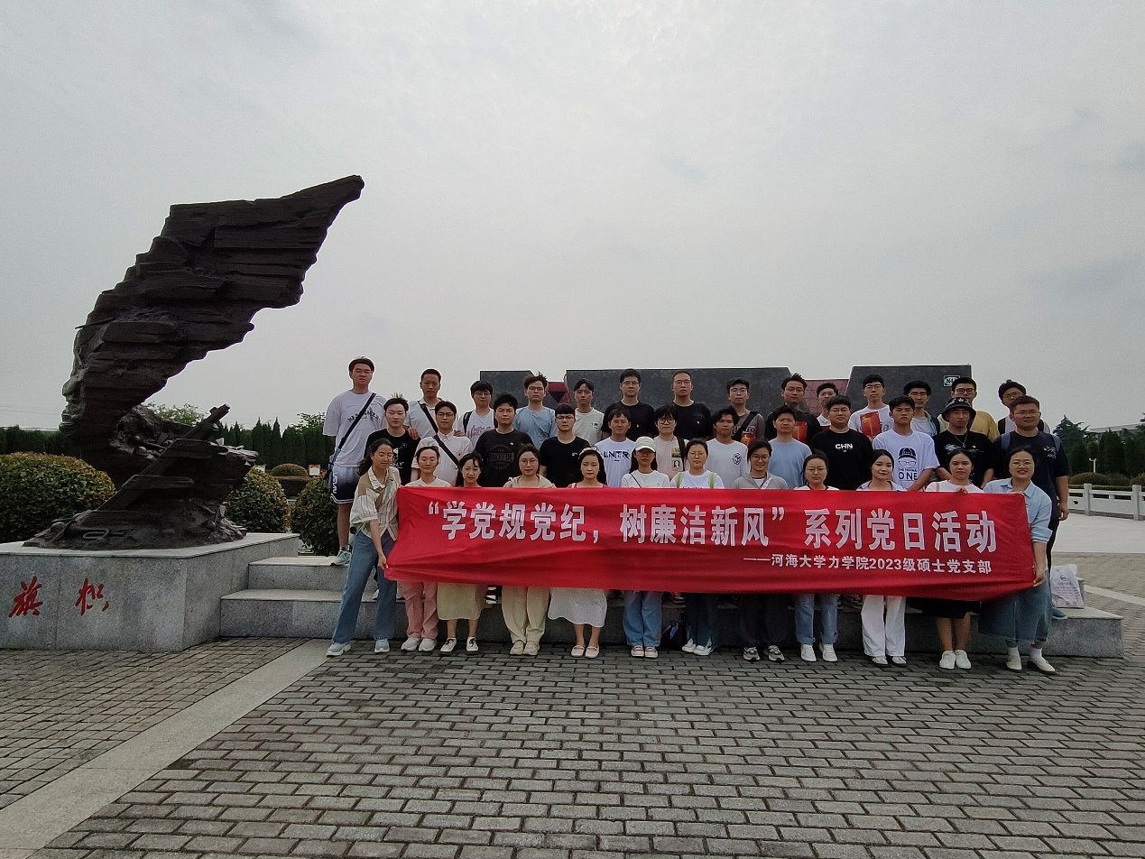 为深化反腐倡廉意识,促进廉洁文化建设,准确掌握《中国共产党纪律处分条例》主旨要义和规定要求,2024年6月1日,开云电竞网力学院2023级硕士党支部联合本科生党支部赴溧阳市新四军江南指挥部纪念馆,开展“学党规党纪,树廉洁新风”主题党日活动。