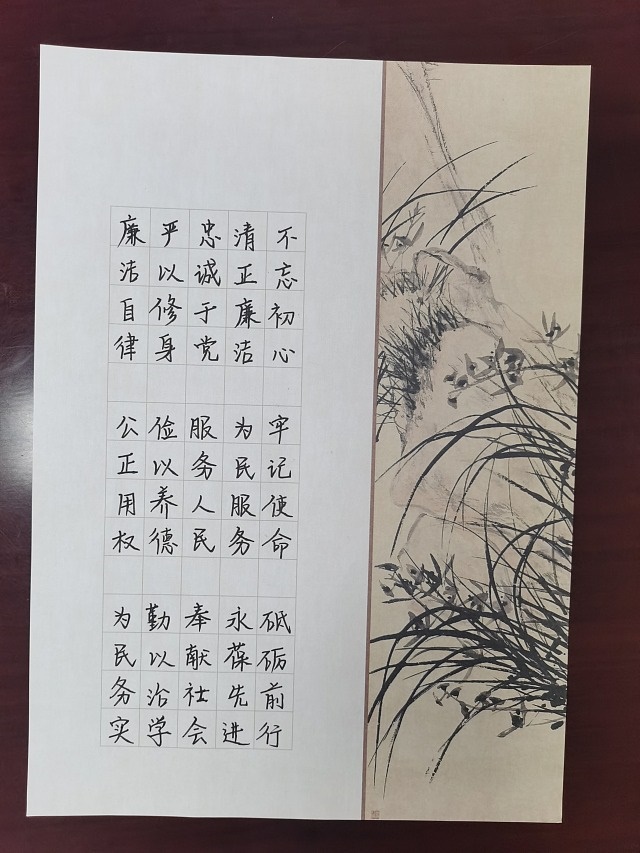 活动现场,党员们手握笔杆,挥毫泼墨,一笔一划书党纪,一纸一墨颂廉洁。他们神情专注,一笔一划地书写着党规党纪的重要内容,在翰墨丹青中书写对纪律规矩的认同与敬畏。“廉洁自律,党性长存”、“不忘初心,牢记使命”等一句句铮铮誓言在纸上呈现,不仅是书法艺术的展示,更是党员们内心坚定信念的表达。