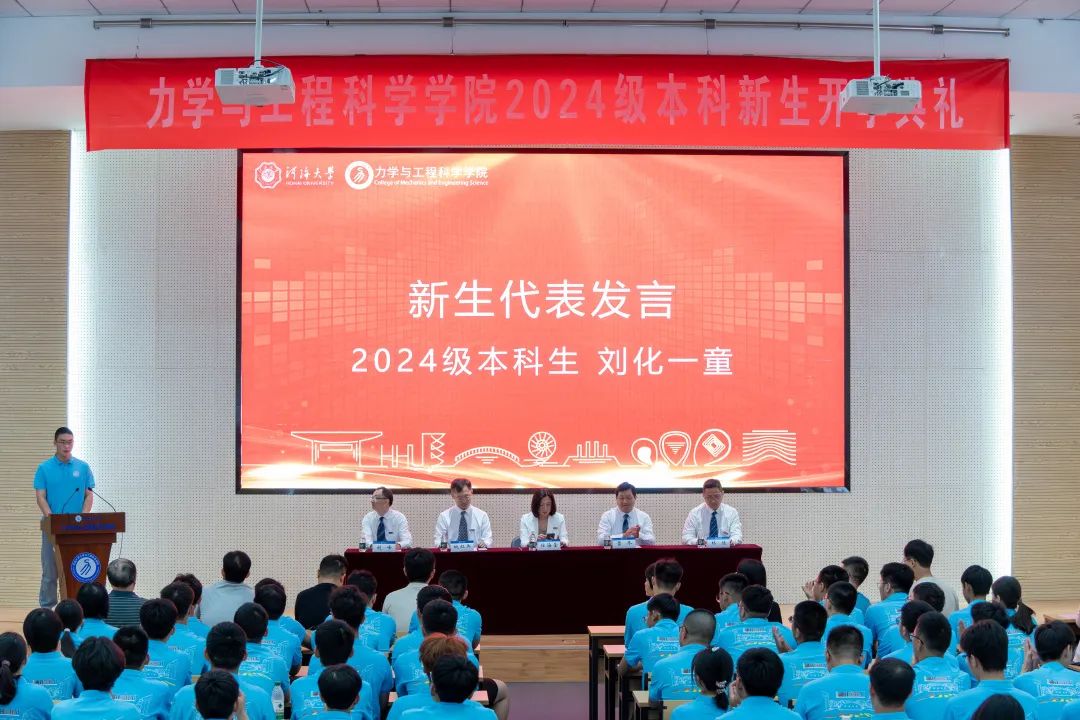 9月10日,力学与工程学院2024级本科生开学典礼在乐学楼范钦珊报告厅隆重举行。学院党委书记任海莹,院长雷冬,副院长姚红兵,副院长林继,教师代表章青,工程力学系和应用物理系负责人、2024级新生班导师、学院办公室主任,组织员,本科教学秘书,新生辅导员、2024级全体本科新生参加了开学典礼,活动由学院党委副书记、副院长刘峰主持。
