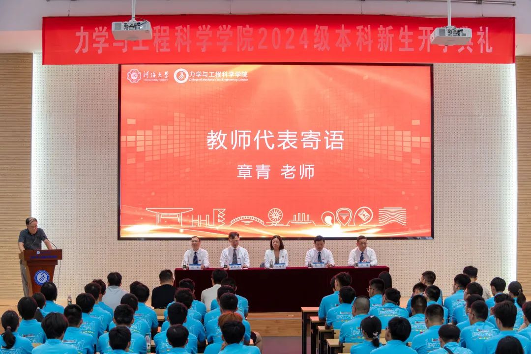 教师代表章青教授在开学典礼上向新生们寄予浓厚期望,他希望同学们清清白白做人,踏踏实实做事,勤于思考,善于合作,乐于助人,刻苦奋斗。希望同学们在开云电竞网力学院的求学之路上生活充满欢笑,梦想照进现实,取得累累硕果。