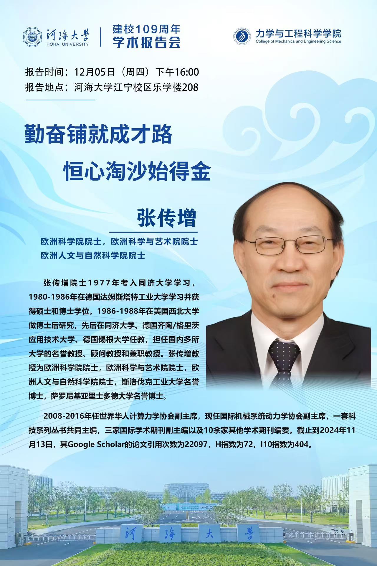 力学与工程科学学院院士讲座通知(2024-57):勤奋铺就成才路,恒心淘沙始得金