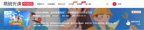 依托“易班优课”平台,建立劳动精神学习线上学习课堂,通过观看大国工匠和劳模的感人事迹,打卡学习心得体会,引导广大同学深刻感悟最美劳动者爱岗敬业、甘于奉献、精益求精的高尚品格,深入理解“劳动最光荣、劳动最崇高、劳动最伟大、劳动最美丽”的精神内涵,从而进一步培育崇尚劳动、尊重劳动的正确劳动观,将劳动精神内化为行动自觉,外化为实践能力,在执行合一中铸牢社会主义核心价值观。