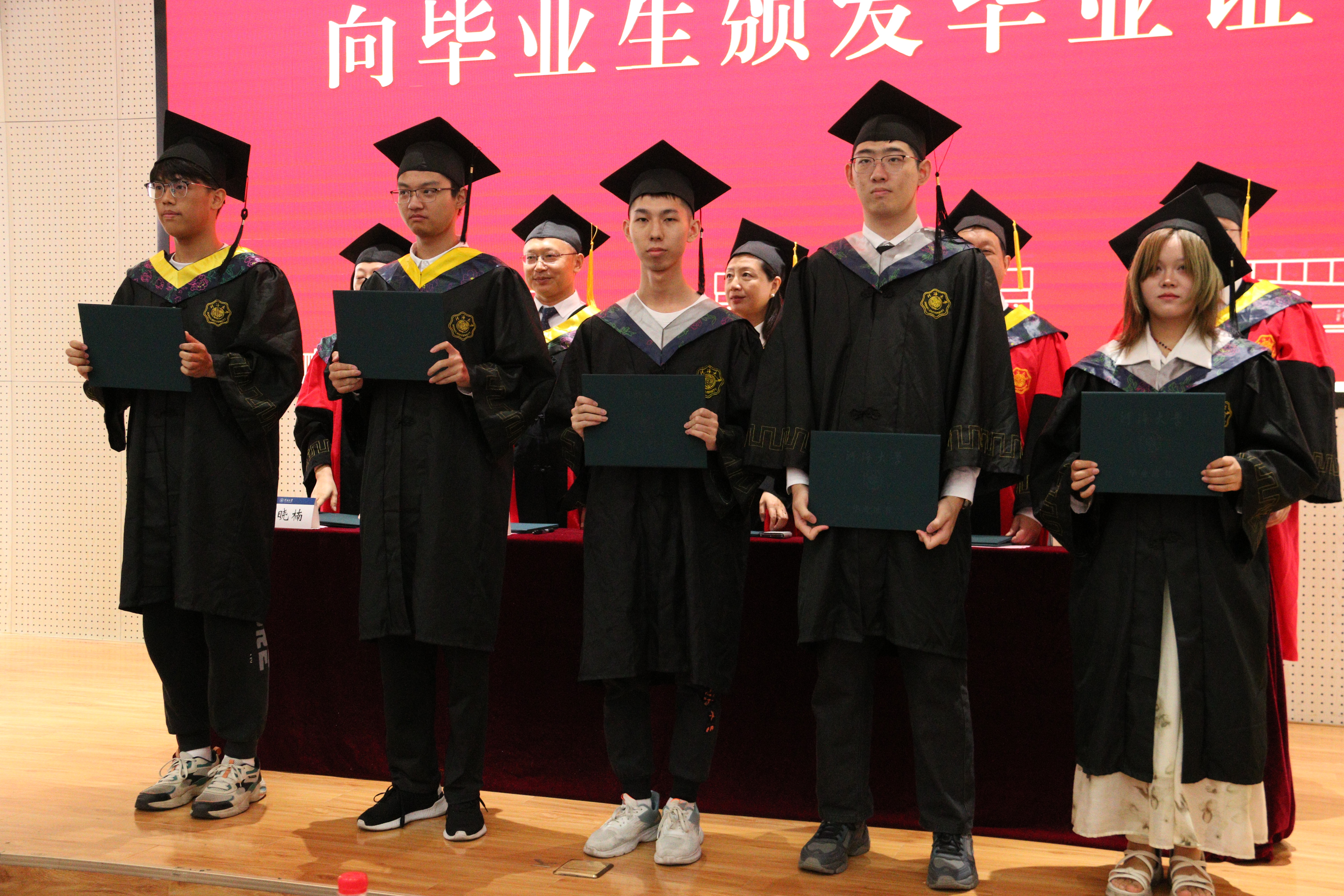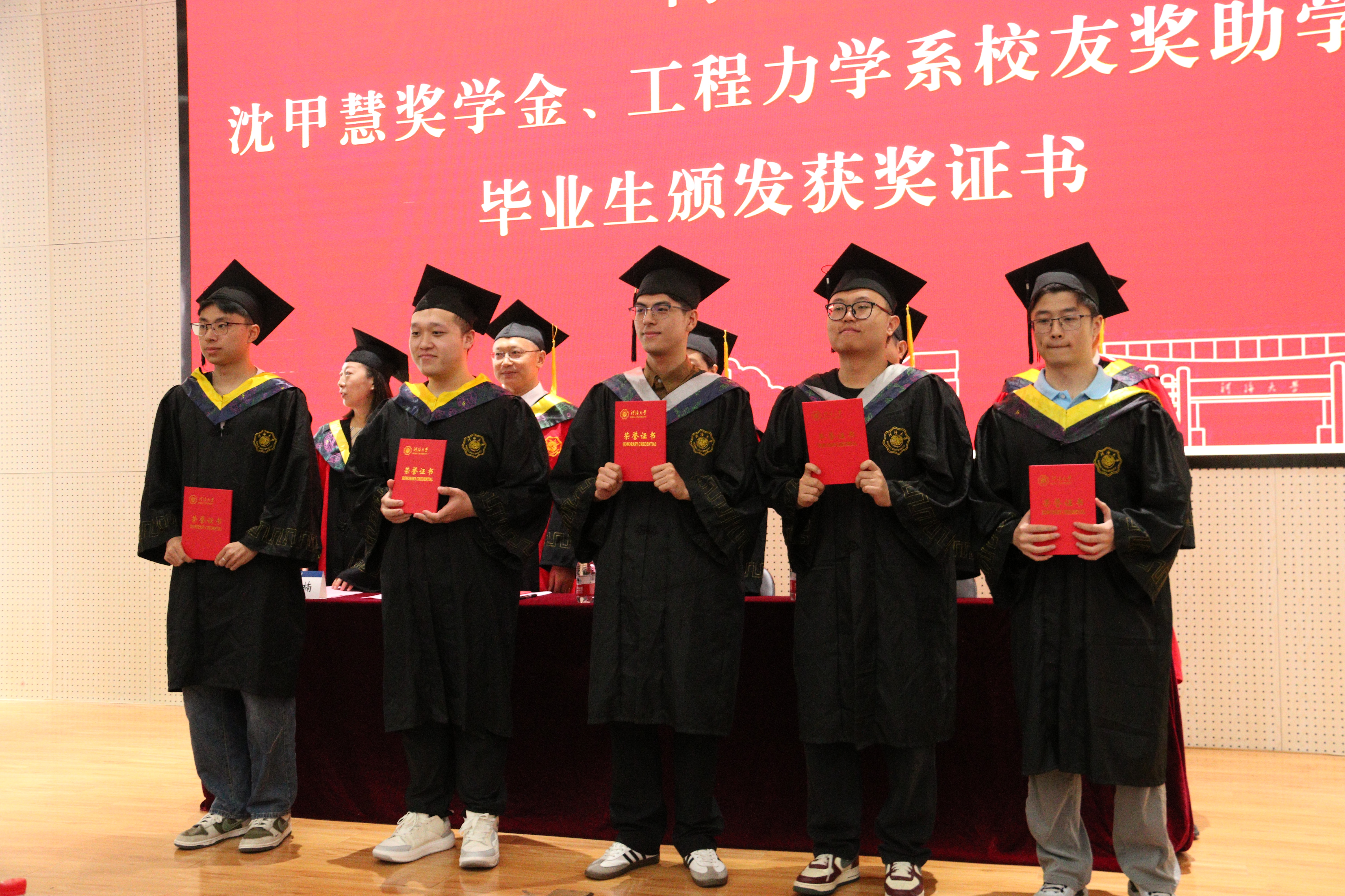 典礼上,学院领导为全体毕业生拨穗并授予毕业证书,对“沈甲慧奖教奖学金”、“工程力学系校友奖助学金”获奖毕业生进行了表彰,也为每一位毕业生赠送了精美的毕业文创礼物。