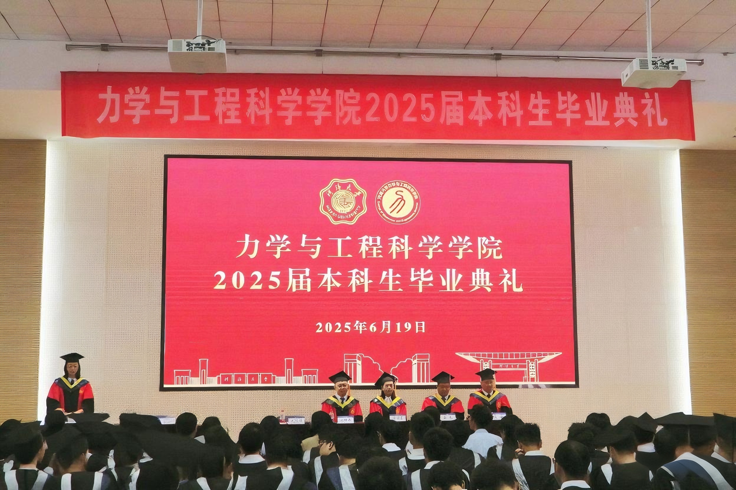 6月19日,力学与工程科学学院隆重举行2025届本科生毕业典礼。学院党委书记任海莹,学院院长雷冬,副院长姚红兵,副院长林继,学院系(所)负责人代表,2025届毕业班班导师代表,学院办公室主任,组织员,团委书记,本科教学秘书,本科毕业班辅导员,2025届本科毕业班学生参加了此次典礼。学院党委副书记、副院长武晓楠主持典礼。