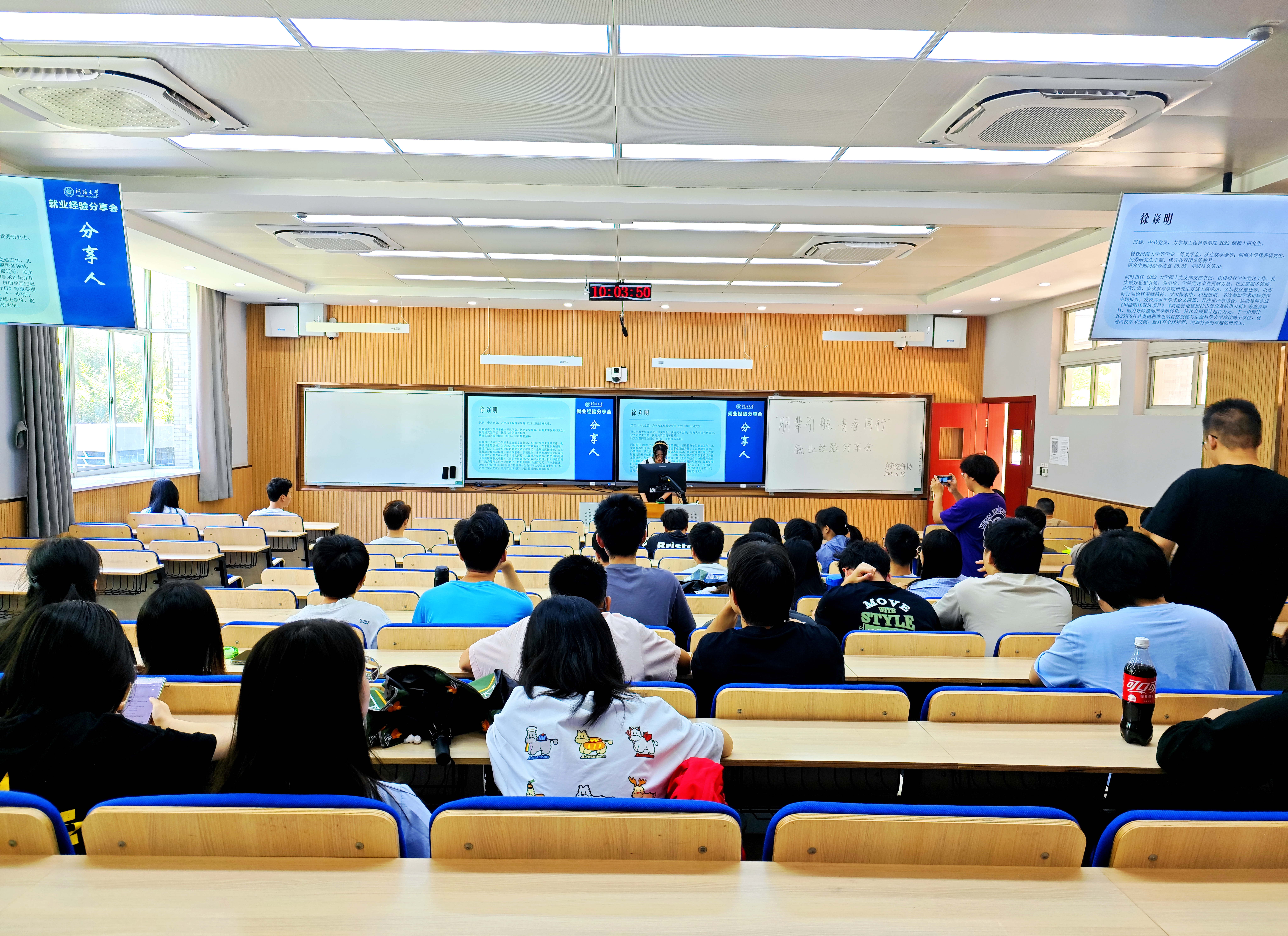 范思圆同学结合自身新能源行业的求职经历,向大家介绍了力学专业不同的就业方向,分享了从校园到职场的转换心得,并向学生工作经历比较丰富的同学提出了求职建议。