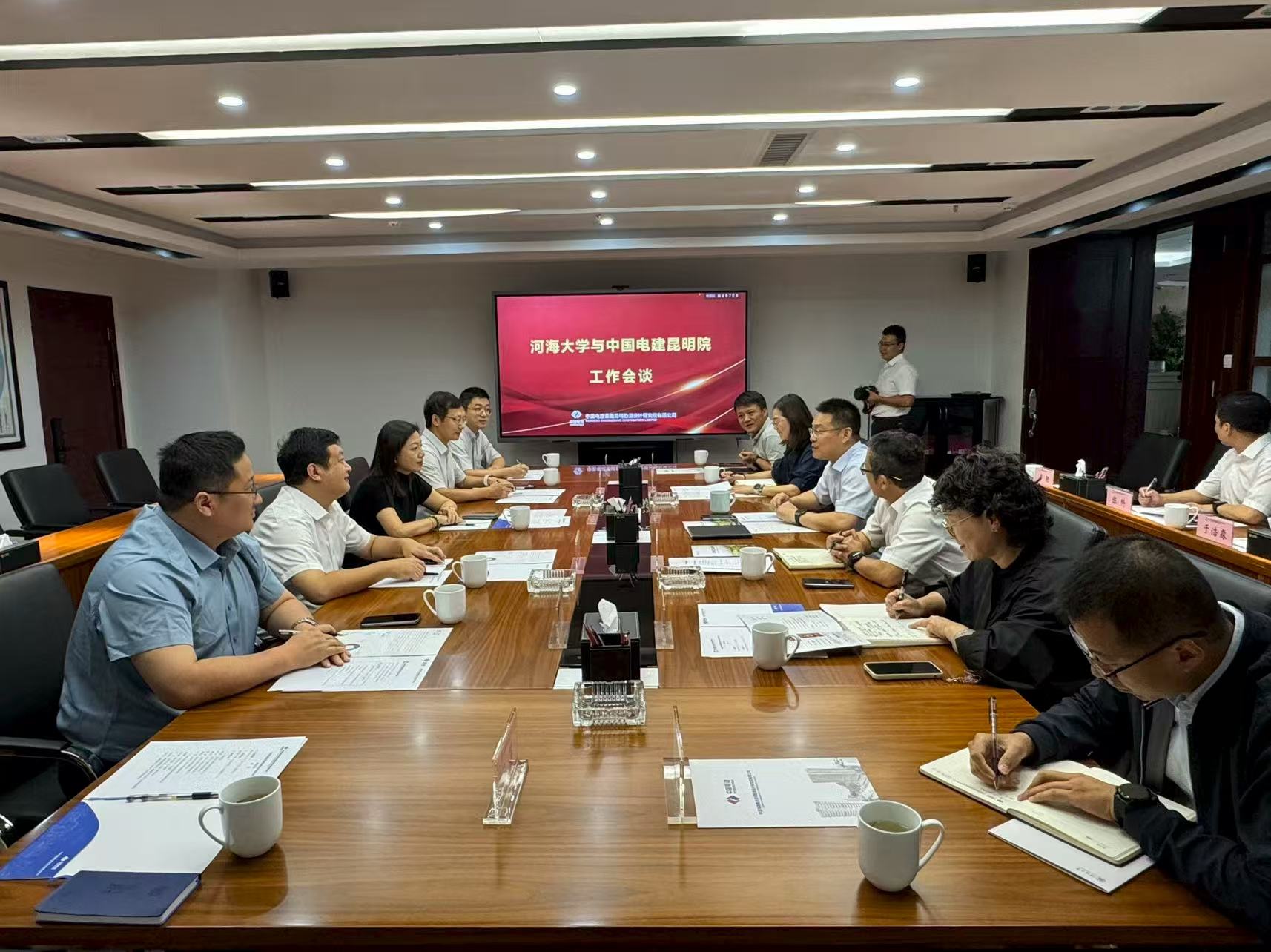 在中国电建集团昆明勘测设计研究院有限公司,戚海峰总经理对学院一行来访表示热烈欢迎,并表达了希望与学院在科学研究、人才培养等环节进一步展开合作交流的美好愿望。双方就共同提升人才培养质量、推进产学研成果转化、不断拓展合作广度深度进行了热烈讨论。