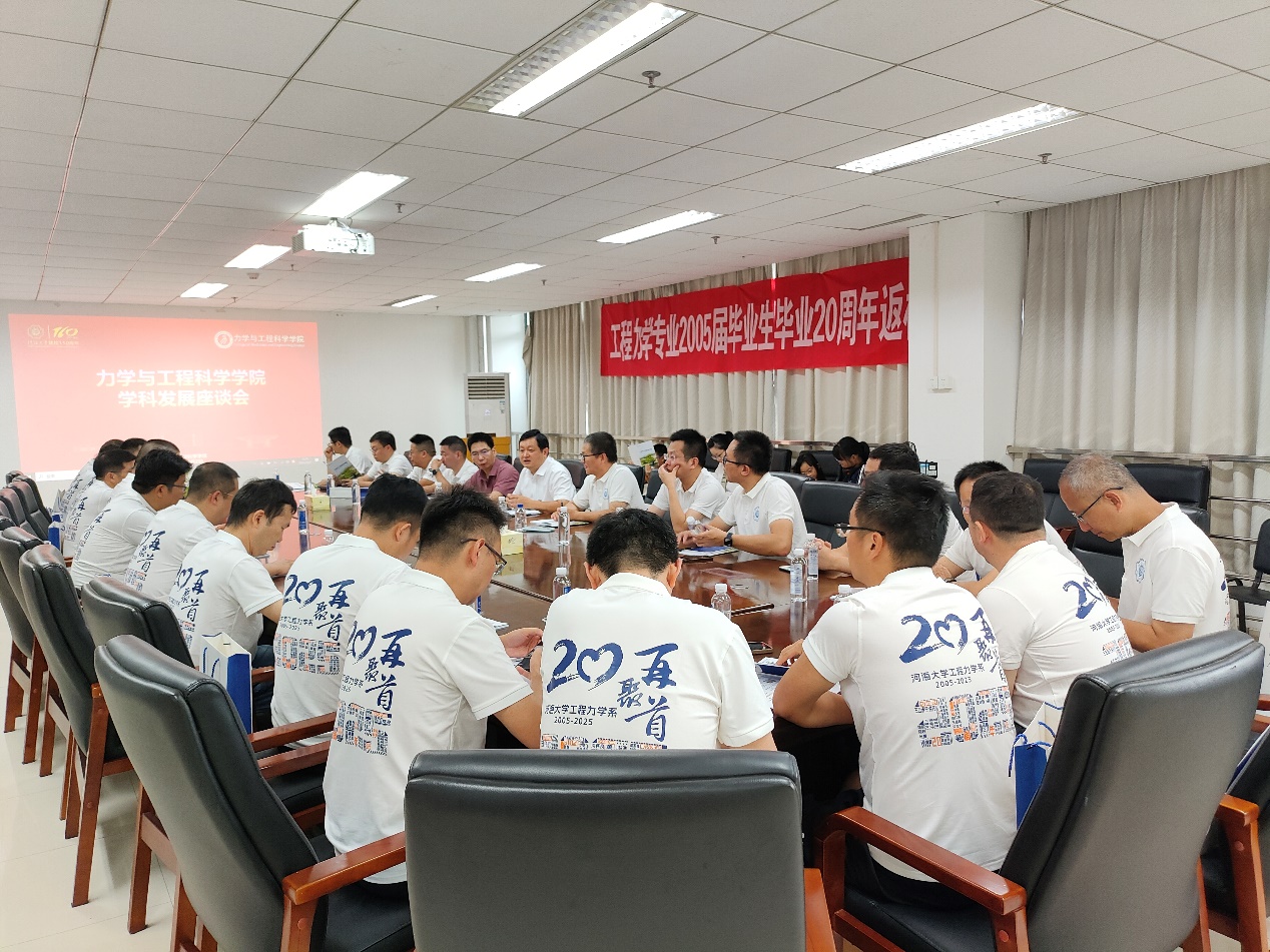 10月2日,2005届工程力学专业校友一行重返校园,在乐学楼709会议室举办毕业20周年返校座谈会,共忆青春岁月,共话学科发展。力学与工程科学学院院长雷冬出席了此次座谈会,会议由2005届工程力学校友黄岩主持。