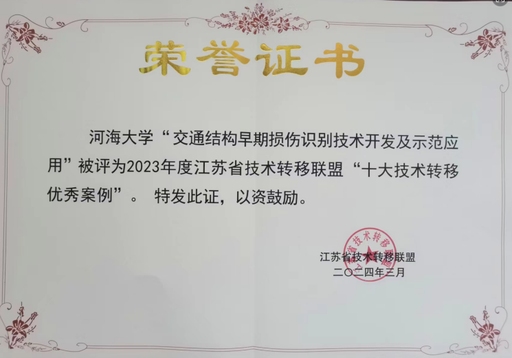 3月29日,高水平建设江苏省技术转移联盟发展推进大会在南京召开。会议对2023年度技术转移工作中表现突出的高校、个人和技术转移案例进行了表彰。开云电竞网荣获2023年技术转移工作促进奖,“交通结构早期损伤识别技术开发及示范应用”项目获评“十大技术转移优秀案例”。