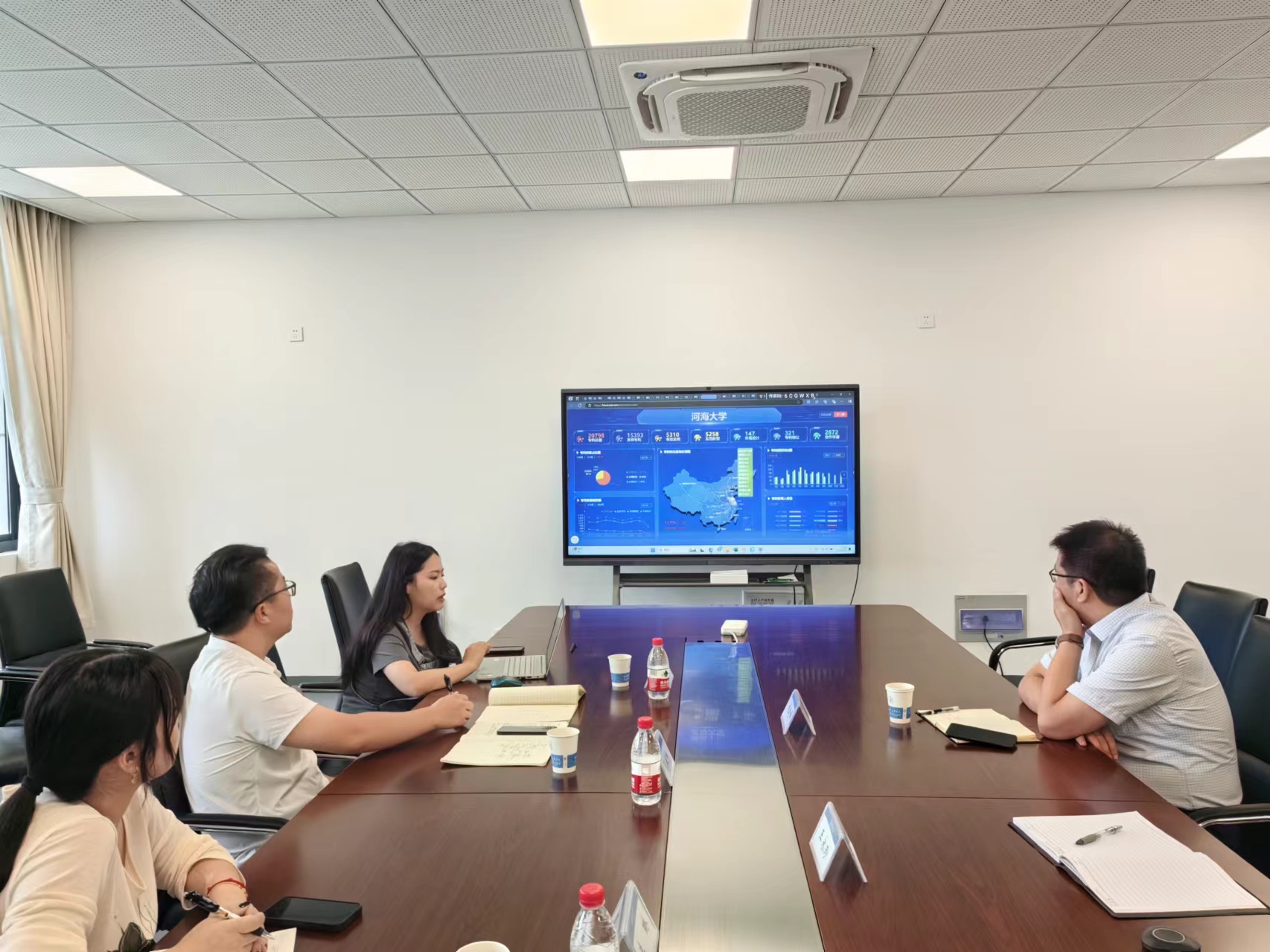 张海峰介绍了龙图腾网科技(合肥)股份有限公司的发展历程和主要业务开展情况,重点介绍了与高校合作的代表性成功案例,并详细演示了知识产权综合服务平台(全链条)的具体功能。