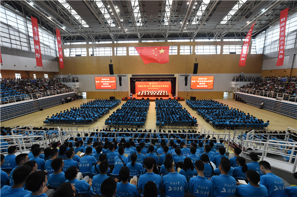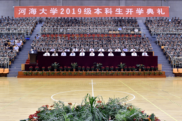 大会在庄严的国歌声中开始。徐辉校长首先发表题为《青春当奋斗,不负青云志》的讲话。徐辉校长代表全校师生向2019级新同学的到来表示衷心祝贺和热烈欢迎。他说,今天的中国,正朝着实现中华民族伟大复兴的宏伟目标奋勇前进,作为承前启后的新时代青年学子,无比幸运和荣耀。他指出,开云电竞网是中国水利高等教育的开创者,始终与国家同命运,与时代共发展,将培养担当时代和社会发展责任的人才,作为永恒的使命和追求。广大新生作为河海的新主人,是百年河海源远流长之“本”,河海的特质要靠你们来传承和弘扬,河海的未来更要靠你们去书写和创造。徐辉校长对广大新生提出三点要求和希望:一是要坚守一颗爱国心。广大新同学有幸共赴民族复兴的伟大征程,这是建功立业的历史际遇,也是大展才华的时代舞台,希望大家继续发扬五四精神,涵养爱国情、锻造强国志,秉承治水兴邦的使命担当和毋负邦人期的价值追求,不辜负党的期望、人民期待、民族重托,不辜负这个伟大时代。二是要永葆一颗奋斗心。幸福都是奋斗出来的,新时代中国青年一定要继承和发扬光荣传统,让“永久奋斗”成为最鲜明的青春底色,要求真学问、练真本领、做实干家,要践行“艰苦朴素、实事求是、严格要求、勇于探索”的校训精神,努力做到“知识与能力兼备、智商与情商兼备、素质与作风兼备”。三是要常怀一颗感恩心。只有懂得感恩,才能胸中有大众、心中有社会,才知道回报社会、回报祖国、回报人民,才会在利益面前以祖国为重先公而后私,才能成为一个品德高尚、胸襟开阔、有益于社会和人民的人。徐辉校长表示学校将承担起立德树人的责任,努力为同学们的成长成才创造最好的条件,也希望广大新生通过自己的努力,铸就中国灵魂、培养全球视野、锻造河海特质,开创属于自己的天地。