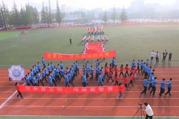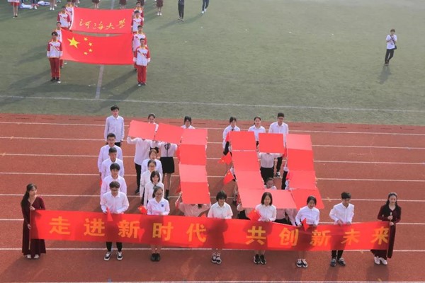 随着激动人心的音乐,国旗队、校旗队、花束队、导旗队、各学院代表队以及教工方阵依次入场。物联网工程学院2017级代表队由七十位水之子组成,汇成了一抹沁心的蓝,表达了“我饮河海一滴水,我献祖国一生情”的情怀。企业管理学院2018级代表队挥舞着五星红旗,以热情优美的舞蹈深情告白祖国。机电工程学院2019级代表队手捧的旋转立体书,是为祖国母亲献上的生日礼物,抬着的东风-41核导弹,尽显河海学子对中国崛起的强烈责任心。教职工代表队步伐整齐,意气风发,展示了河海教工在立德树人岗位上率先垂范的姿态。正值中华人民共和国70华诞,全校上下洋溢着欢快的氛围,各自用创新的形式表达对祖国母亲的祝福。