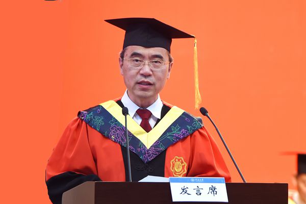 典礼上,徐辉发表了《青春当奋斗 逐梦新征程》的演讲,向顺利完成学业的全体研究生表示热烈的祝贺,向养育、培养其成才的父母和教师员工致以最崇高的敬意和最诚挚的问候。他回顾了近年来国家和学校取得的重大成就,充分肯定了毕业研究生在学期间在推动了学校朝建设世界一流特色研究型大学阔步迈进、积极服务乡村振兴、援疆援藏等国家战略、深化学校国际合作、促进多元文化交流、服务“一带一路”建设等方面作出的积极贡献。